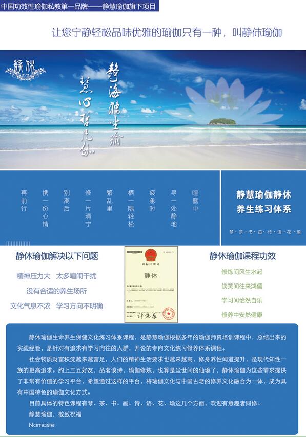 静慧瑜伽所有课程体系品牌均已申请商标保护。